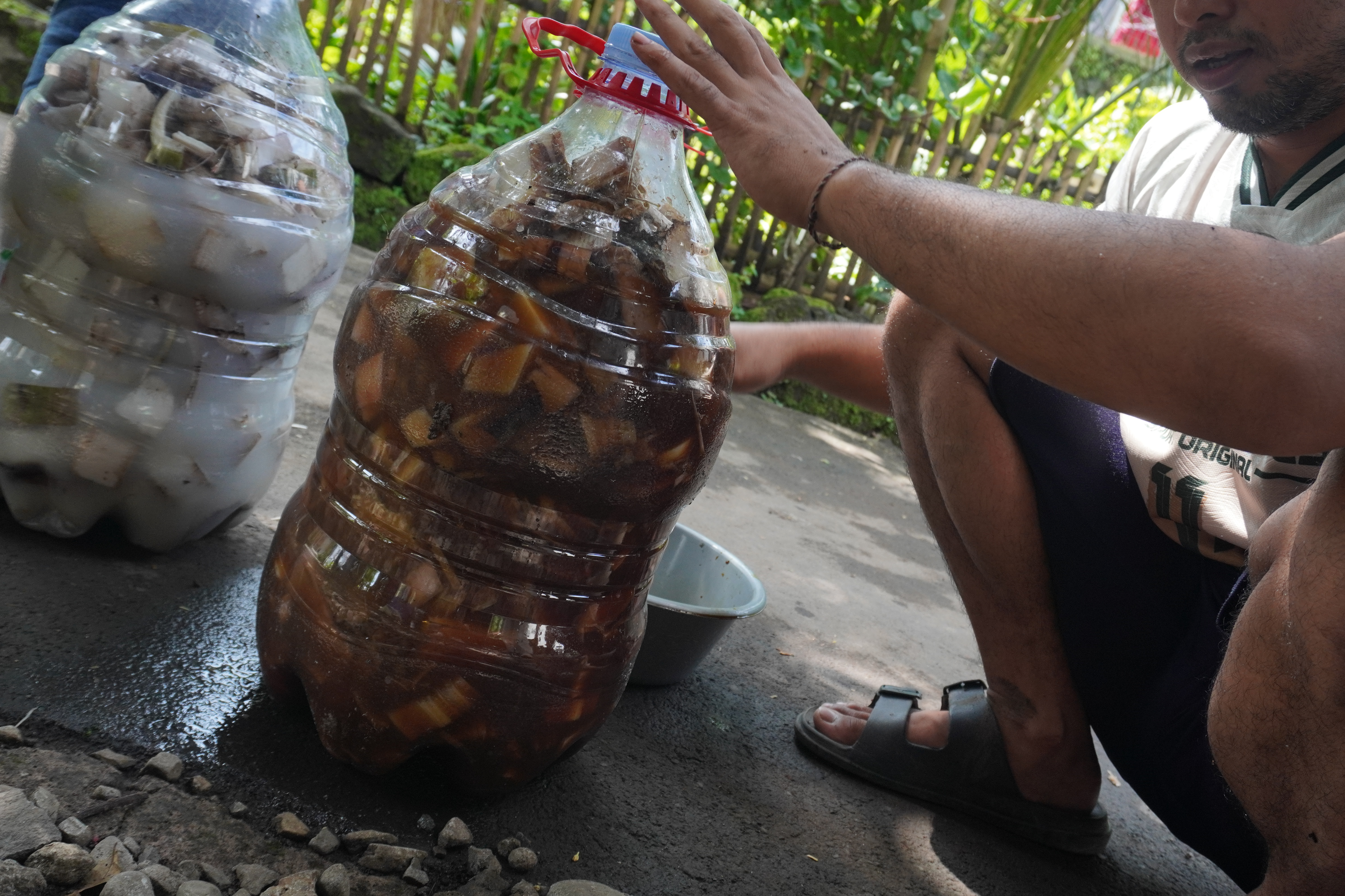 Program ini memanfaatkan limbah pelepah pisang untuk membuat pupuk organik cair.