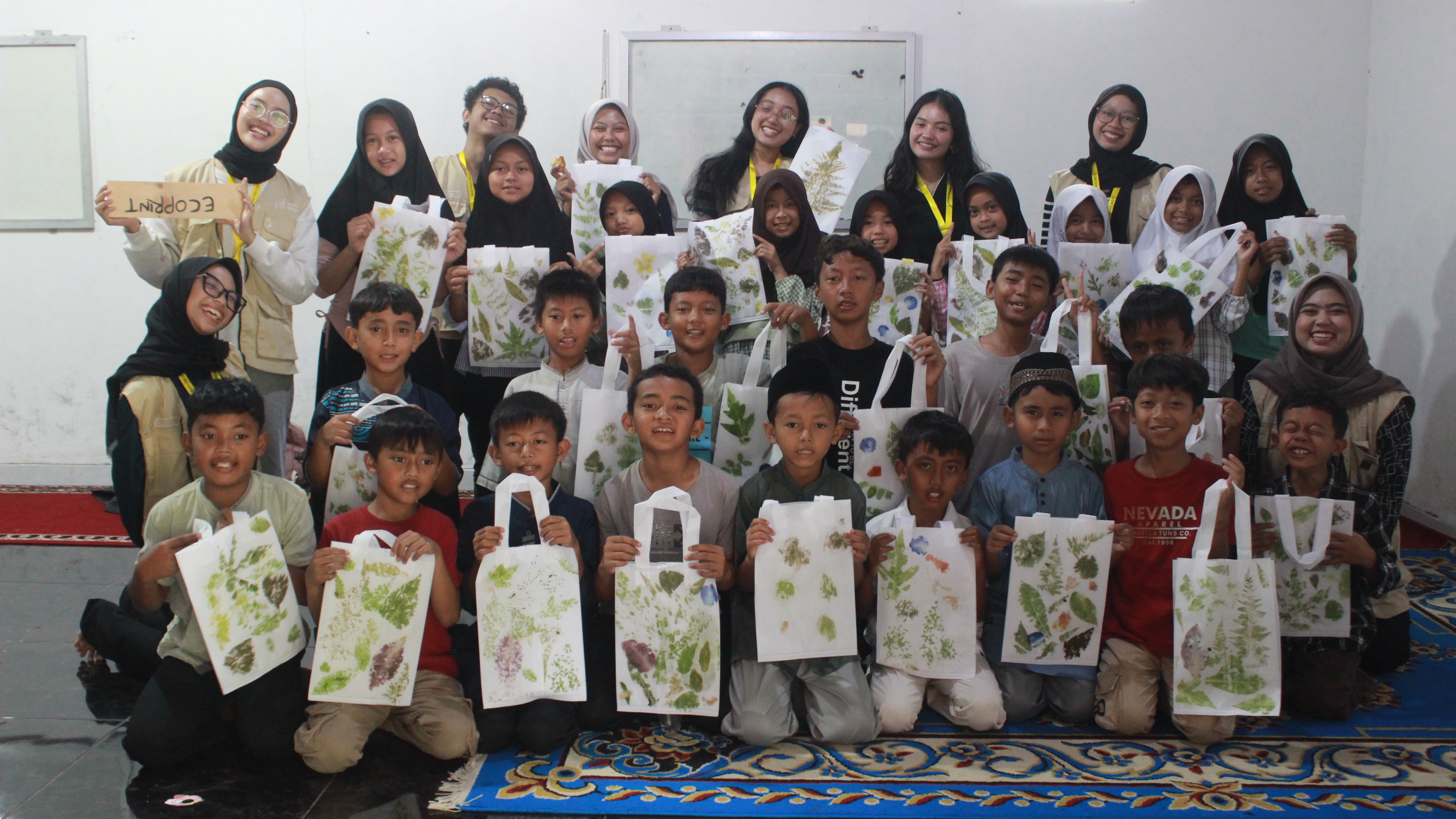 Program ini mengajarkan teknik ecoprint untuk membuat totebag dengan motif alami dari daun dan bunga.